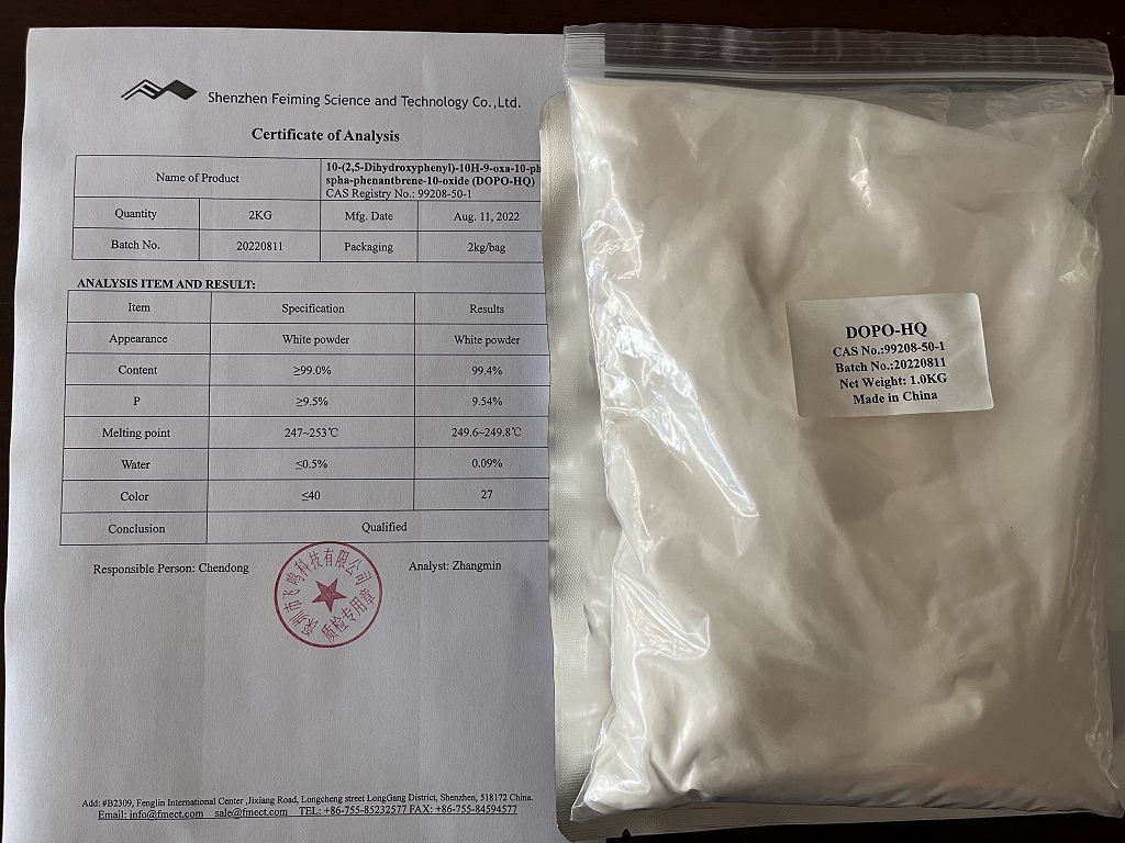 DOPO-HQ est un nouveau retardateur de flamme sans halogène de phosphate, pour les résines époxy de haute qualité telles que les PCB, pour remplacer le TBBA, ou l'adhésif pour les semi-conducteurs, les PCB, les LED, etc.Intermédiaire pour la synthèse de retardateur de flamme réactif.